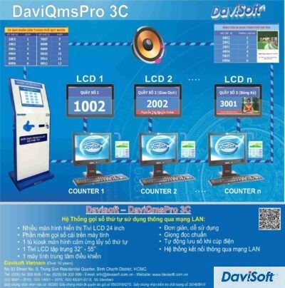 Model: DaviQmsPro 3C Hệ Thống gọi số thứ tự sử dụng thông qua mạng LAN: