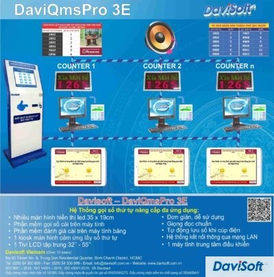 Model: DaviQmsPro 3E Hệ Thống gọi số thứ tự nâng cấp đa ứng dụng: