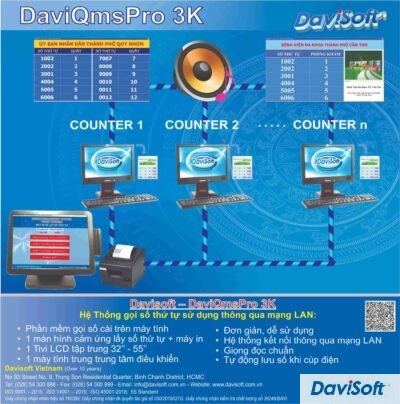 Model: DaviQmsPro 3K Hệ Thống gọi số thứ tự sử dụng thông qua mạng LAN: