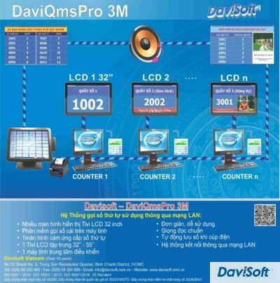 Model: DaviQmsPro 3M Hệ Thống gọi số thứ tự nâng cấp đa ứng dụng: