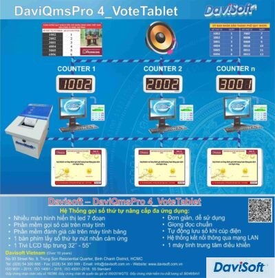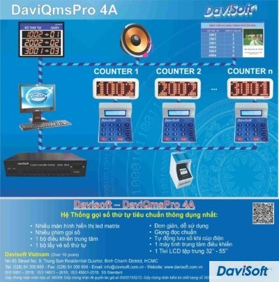 Model: DaviQmsPro 4D Hệ thống gọi số thứ tự tiêu chuẩn thông dụng nhất