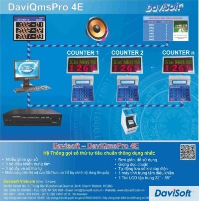 Model: DaviQmsPro 4E Hệ thống gọi số thứ tự tiêu chuẩn thông dụng nhất