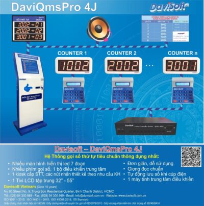 Model: DaviQmsPro 4J Hệ thống gọi số thứ tự tiêu chuẩn thông dụng nhất