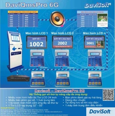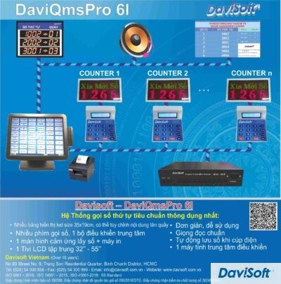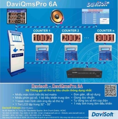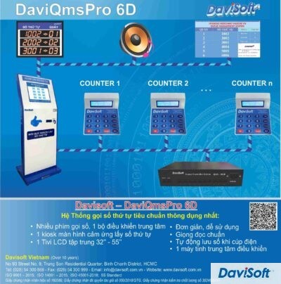 Model: DaviQmsPro 6D Hệ thống gọi số thứ tự tiêu chuẩn thông dụng nhất