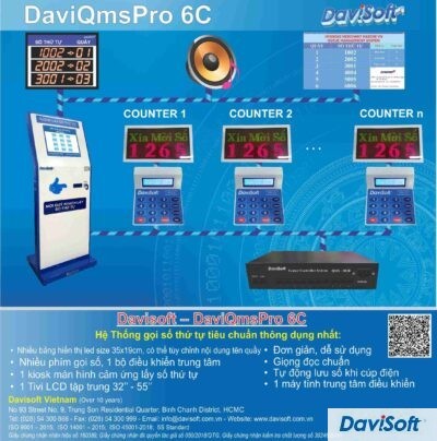 Model: DaviQmsPro 6C Hệ thống gọi số thứ tự tiêu chuẩn thông dụng nhất