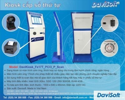 Kiosk cấp số thứ tự màn hình cảm ứng 17″